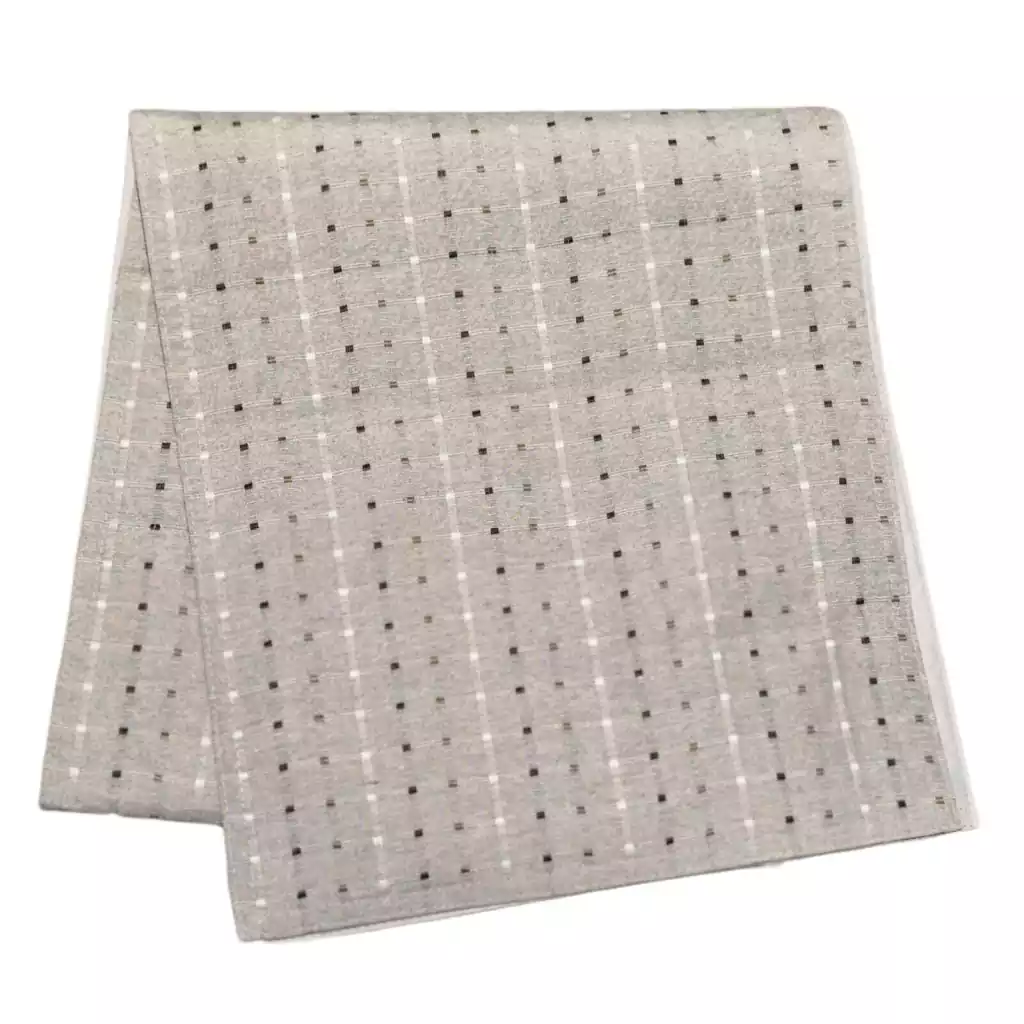 Bello Camino para mesa en algodon curado color gris con detalles en hilo tono plomo y negro.