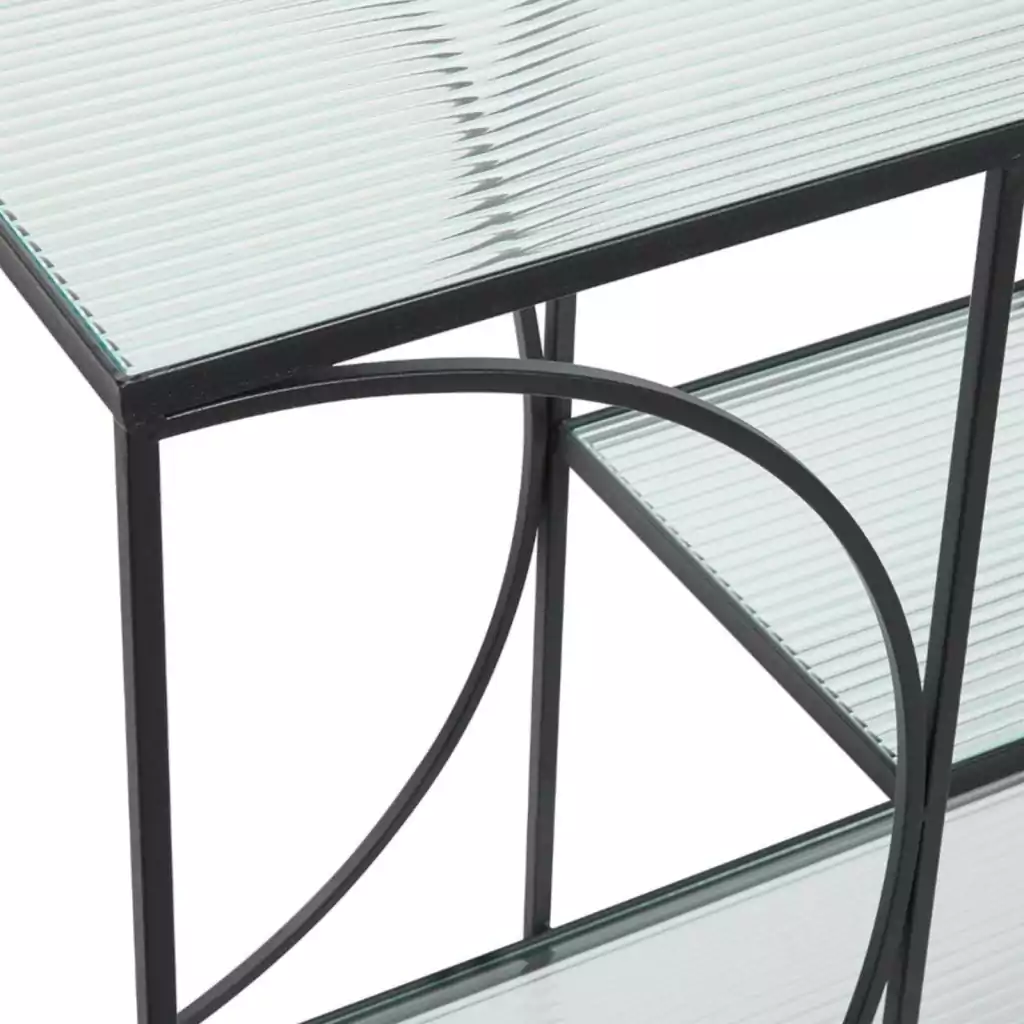Hermoso librero Italiano, con reipisas de cristal y metal en color negro.